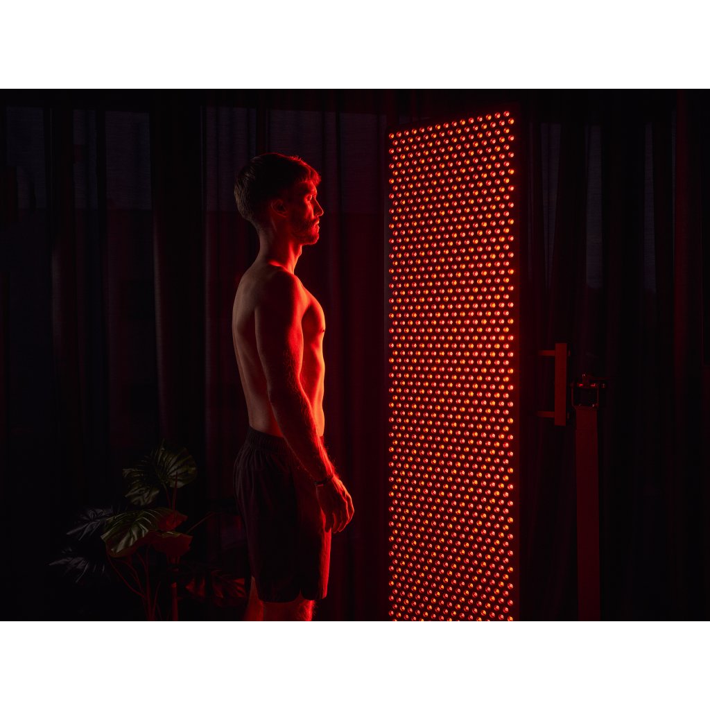 Laden Sie sich und Ihre Zellen neu aufVor allem Ihre Zellen – denn sie sind es, die uns ausmachen. Wenn ihnen Energie fehlt, fühlen Sie sich schlechter, funktionieren weniger effektiv und sehen weniger vital aus. Die Kombination aus rotem und nahinfrarotem Licht (NIR) kann Ihre Zellen in nur 10–20 Minuten täglich aufladen. Egal, ob Sie ein Sportler sind, Stunden am Computer verbringen oder einfach das Beste für sich tun möchten. Auch für Ihre Haustiere funktioniert es hervorragend. Regelmäßige Therapie kann die Regeneration unterstützen und die Qualität von Haut und Haar verbessern. NIR-Licht dringt tief in Gewebe ein und erreicht das Muskuloskelettalsystem und die Organe. Gemeinsam mit rotem Licht ergänzen sie sich perfekt, um die Vitalität insgesamt zu fördern. Das Master 5.0-Panel ist unser bisher größtes und leistungsstärkstes Modell mit 990 LEDs und Abmessungen von 183 × 53 cm. Dank des 30°-Strahlwinkels wird das gesamte Licht direkt auf Sie gelenkt, ohne unnötige Streuung, und beleuchtet den ganzen Körper auf einmal – für komplette Ganzkörpertherapie.  |